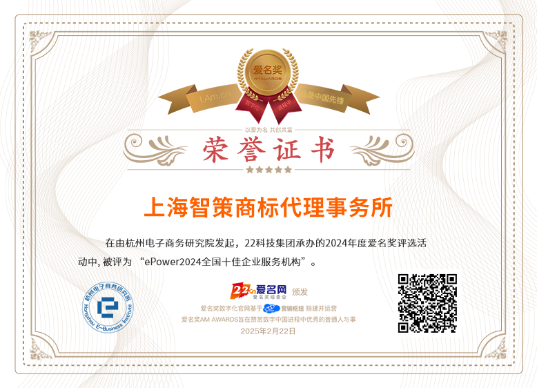 当前位置:爱名奖 > ePower2024全国十佳企业服务机构获奖名单>上海智策商标代理事务所