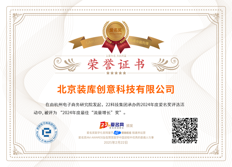 当前位置:爱名奖 > 2024年度最佳“流量增长”奖获奖名单>北京装库创意科技有限公司