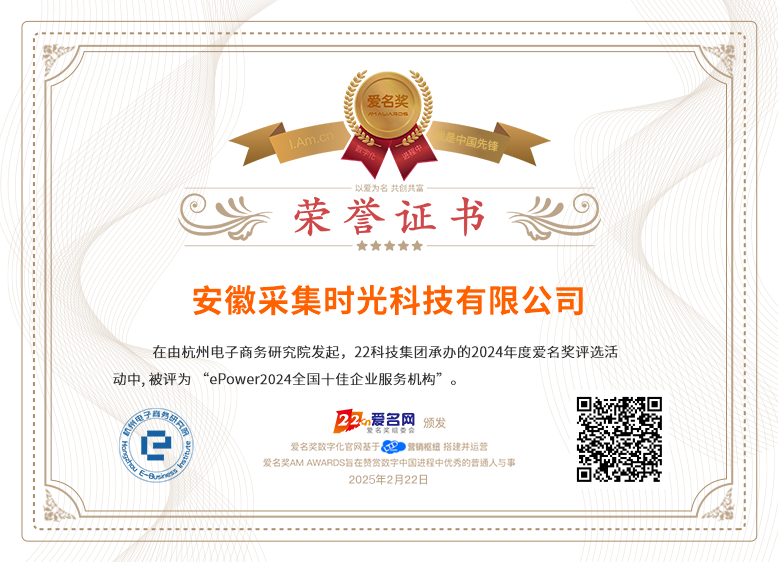 当前位置:爱名奖 > ePower2024全国十佳企业服务机构获奖名单>安徽采集时光科技有限公司