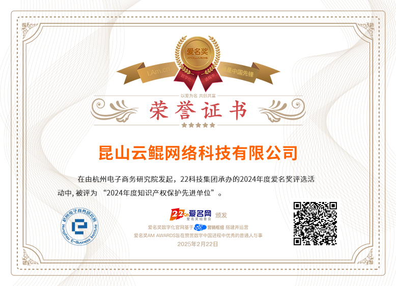 当前位置:爱名奖 > 2024年度知识产权保护先进单位获奖名单>昆山云鲲网络科技有限公司