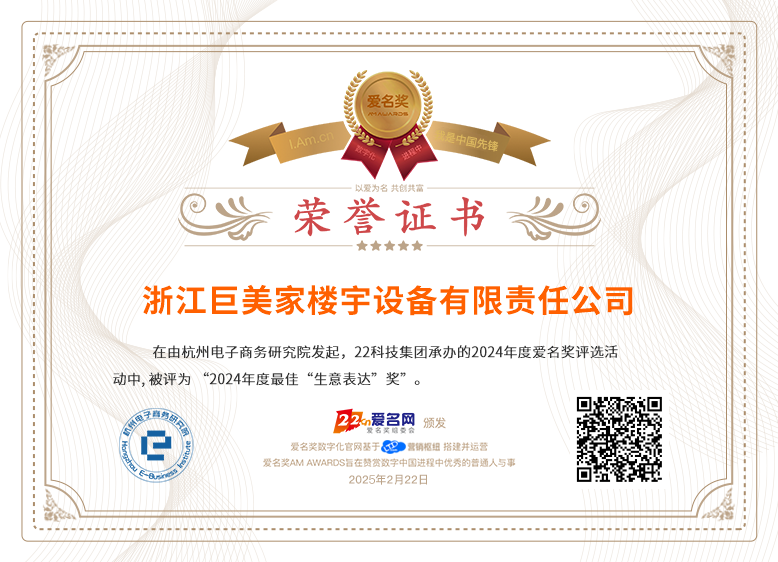 当前位置:爱名奖 > 2024年度最佳“生意表达”奖获奖名单>浙江巨美家楼宇设备有限责任公司