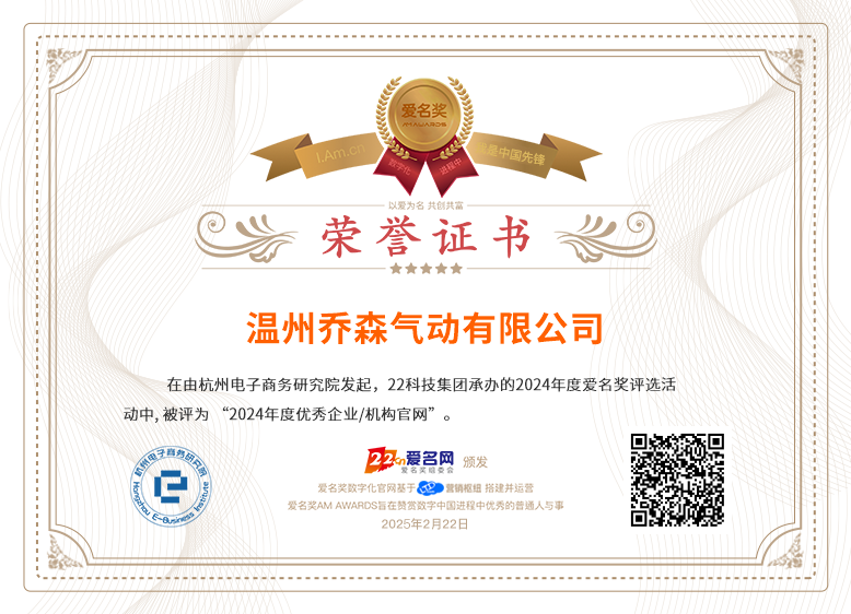 当前位置:爱名奖 > 2024年度优秀企业/机构官网获奖名单>温州乔森气动有限公司